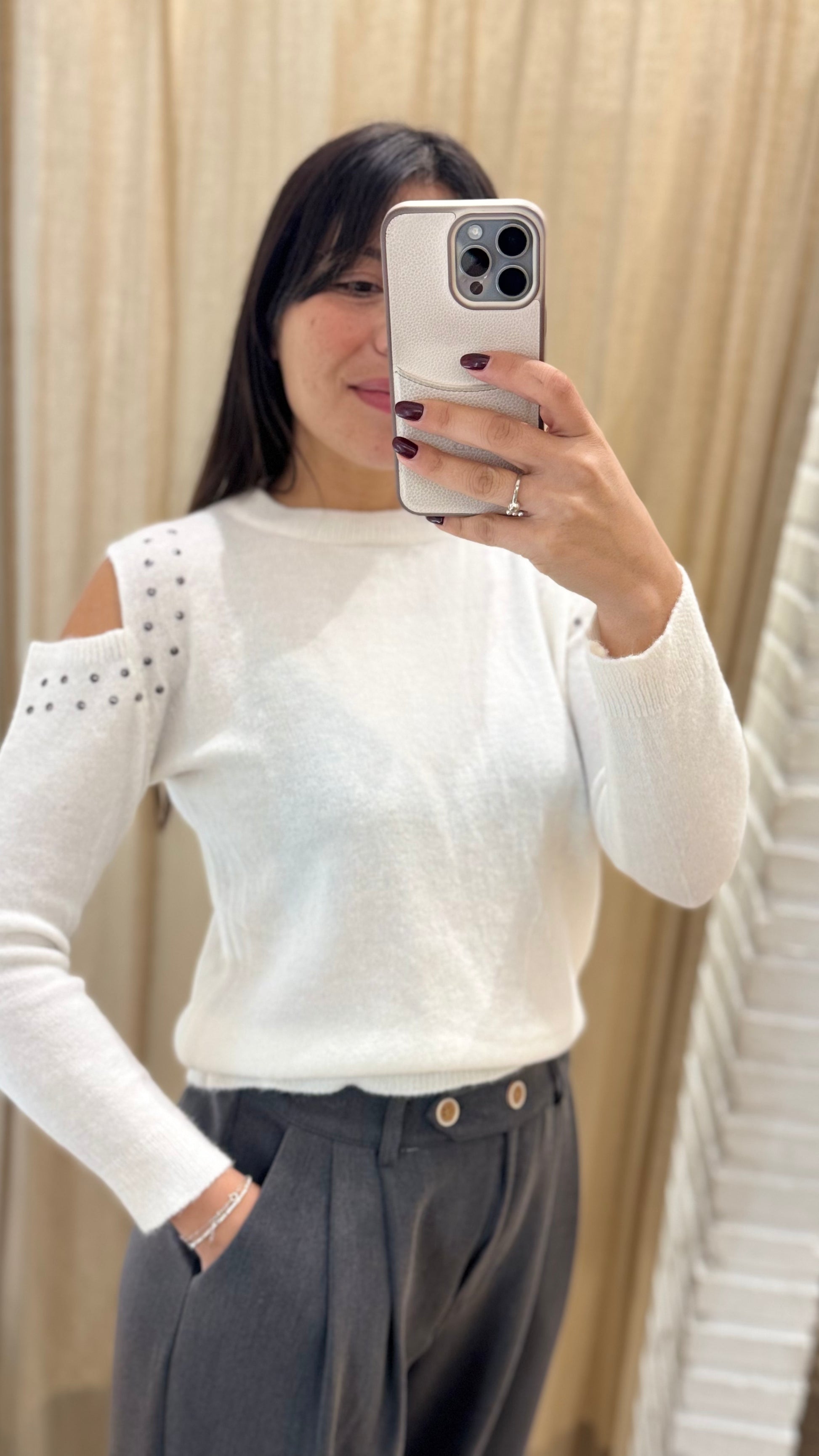 Jersey hombro descubierto con tachuelas