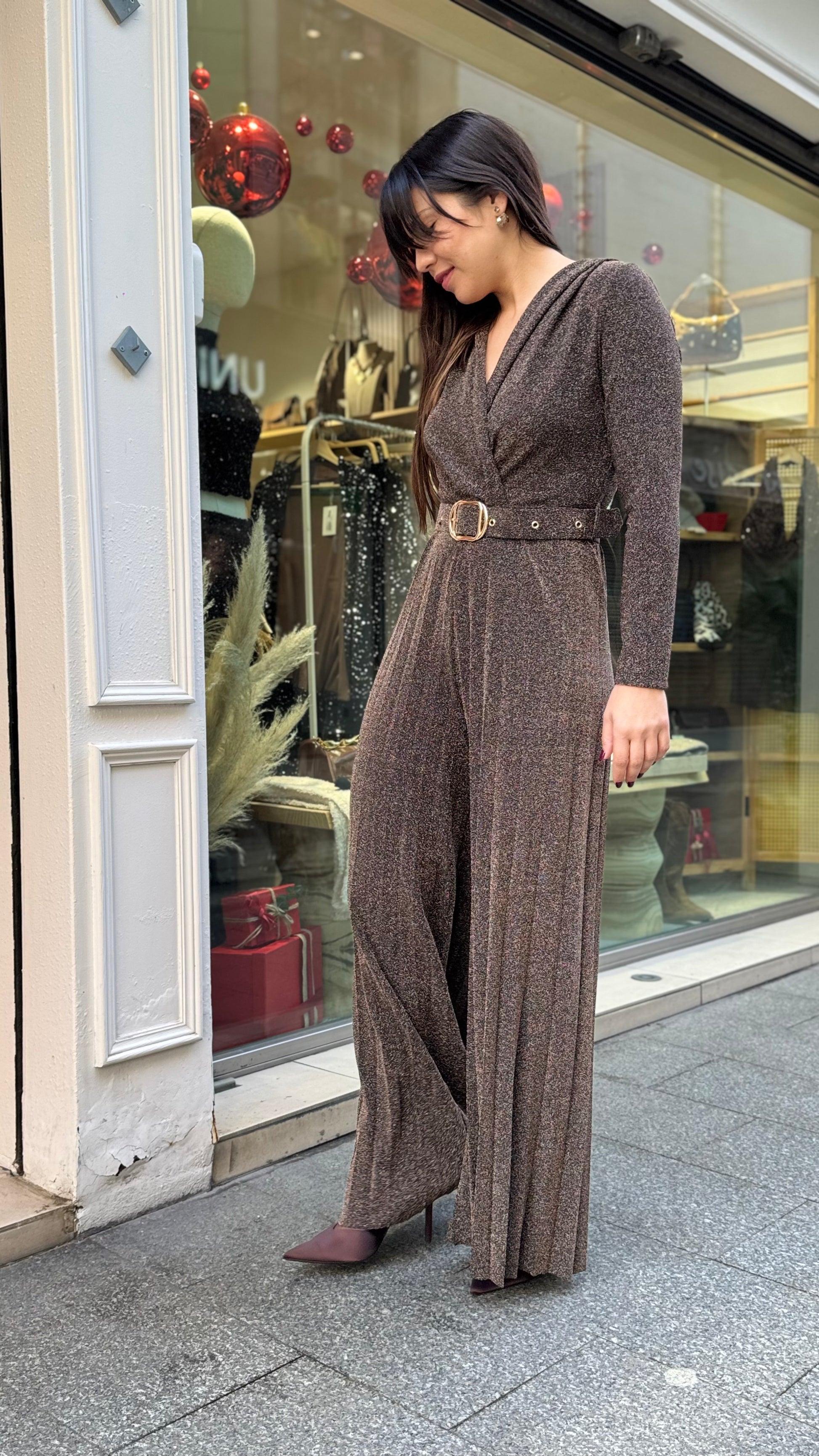 Mono de brillo con cinturón ideal para cualquier ocasión.